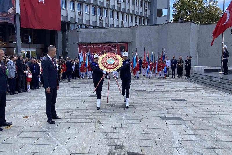 Ardından Zonguldak Valisi Osman Hacıbektaşoğlu ve Zonguldak Belediye Başkanı Ömer Selim Alan tören alanına çelenk bıraktı.