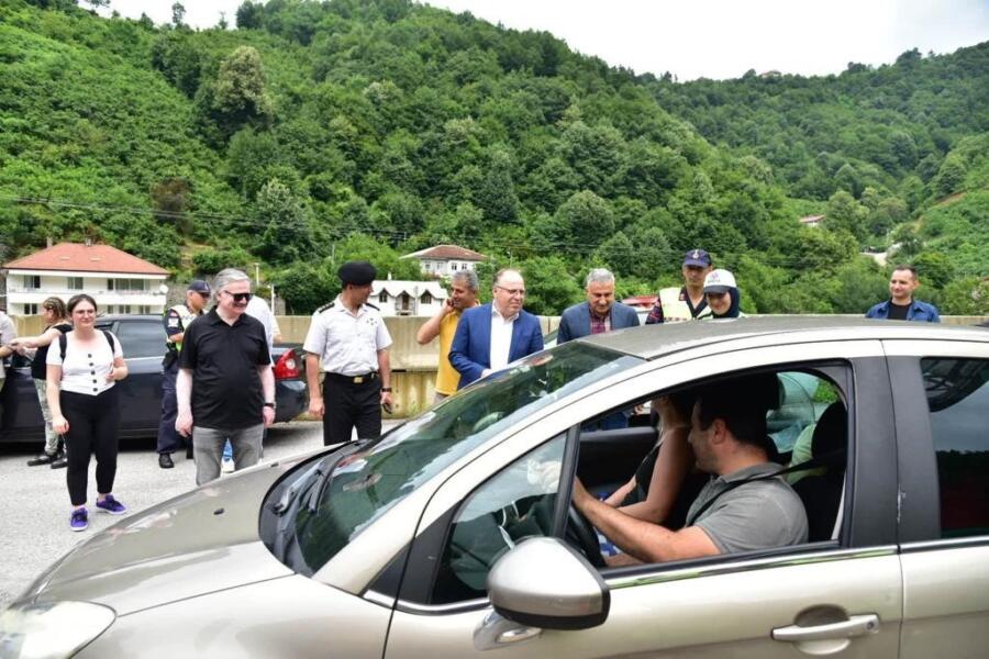 Zonguldak’ta Kurban Bayramı öncesinde Vali Mustafa Tutulmaz; beraberinde İl Emniyet Müdürü Fahri Aktaş ve İl Jandarma Komutanı Kıdemli Albay Cezmi Yalınkılıç ve ekiplerle birlikte Gökgöl Mağarası uygulama noktasında sürücülerin bayramını kutladı. Trafik tedbirleri çerçevesinde güvenli trafik ortamının sağlanması, tatilin huzur ve güven içerisinde gerçekleştirilmesi amacıyla sürücülere ve yolculara bilgilendirme broşürleri, çocuklara ise düdük verildi.