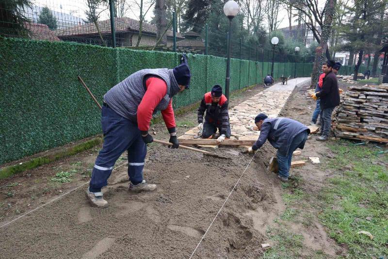 11 dönüm alana sahip park içindeki aydınlatma direklerinin bakımları tamamlanırken, yürüyüş yolları da baştan sona yenileniyor. Kullanılamaz hale getirilmesi nedeniyle sökülen ahşap yürüyüş yolları yerine, park içinde kayrak taşı döşenerek şık görünümlü yeni yollar oluşturuluyor.