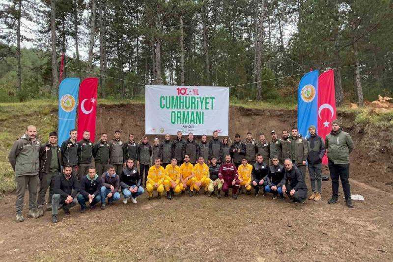 Kastamonu’nun İhsangazi ilçesinde “Cumhuriyete nefes” sloganıyla, sağanak yağışa aldırış edilmeden fidan dikilerek hatıra ormanı oluşturuldu.