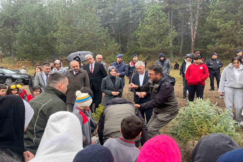Etkili olan sağanağa aldırış edilmeden etkinlikte 150 fidan dikildi. Öğrenciler ve protokol üyeleri oluşturulan 100. Yıl Cumhuriyet Ormanı’nda dikilen fidanlara can suyu verdi.