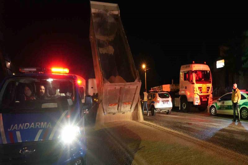 Muhtar Seyfi Özdemir, “Köydeki vatandaşlarla muhtarlık binasında çay içiyorduk. Tırın geldiğini gördüm. Yanına giderek ‘geçmiş olsun’ dedim. Tır şoförü maddenin tehlikeli olmadığını söyledi” dedi.