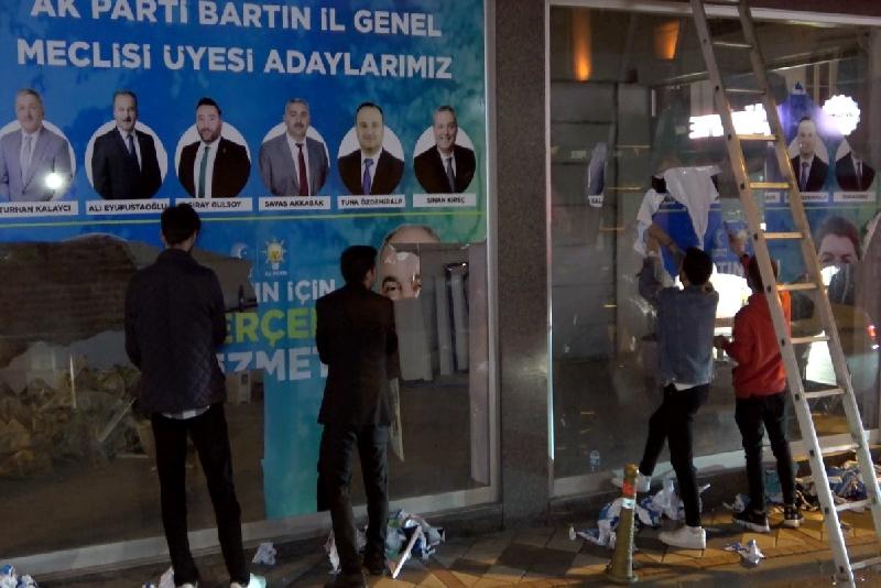 Türkiye genelinde seçime katılan siyasi partiler ile adayların sözlü, yazılı ve görüntülü propaganda faaliyetleri saat 18.00 itibariyle sona ererken, Bartın’da tüm afiş, pankart ve parti bayraklarının kaldırılması için çalışma başlatıldı. İl genelinde cadde ve sokaklara asılan, bilboard ve binalara asılan afiş, pankart ve parti bayraklarının sökülmesi için hummalı bir çalışma başlatıldı. Polis ekiplerinin nezaretinde belediye ve özel iş makineleri ile partililer tarafından yürütülen çalışmalarda sökülen pankart, afiş ve bayraklar, ilgili parti yetkililerine teslim edildi. Akşam saat 18.00’de başlayan çalışmalar ilerleyen saatlere kadar devam etti.