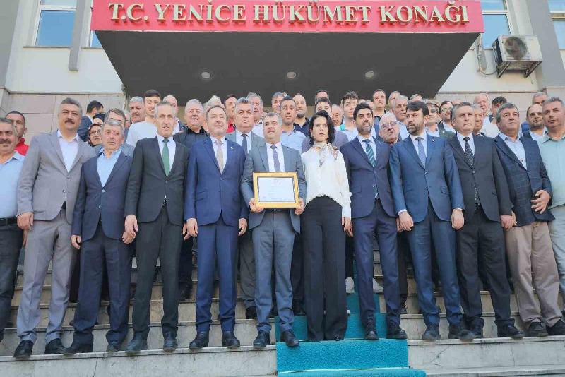 31 Mart yerel seçimlerinde Yenice Belediye Başkanı olan Sertaş Karakaş, İlçe Seçim Kurulu Müdürü İlker Türkmen’den mazbatasını aldı. Vatandaşların yoğun ilgi gösterdiği Karakaş’a mazbata töreninde milletvekilleri Cem Şahin, Ali Keskinkılıç, İl Başkanı Ferhat Salt ve partililer eşlik etti.