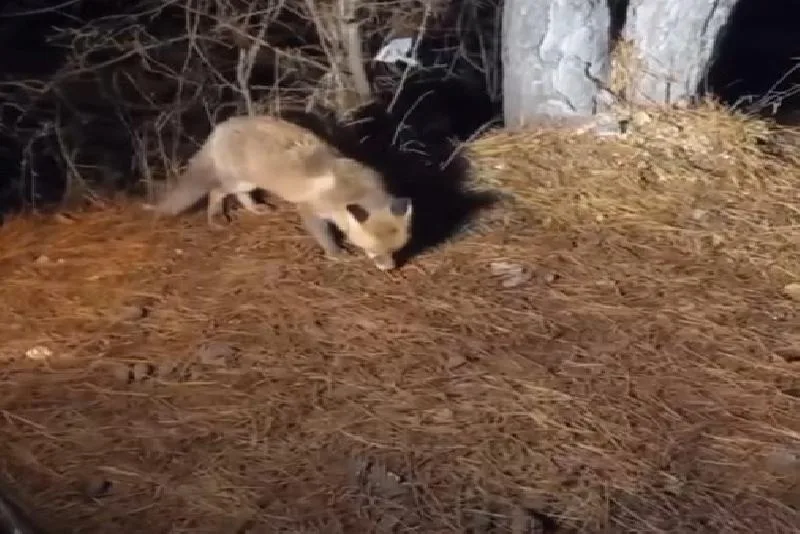 Bolu’nun içme suyunun karşılandığı ve tarım alanlarının sulanmasında kullanılan Gölköy Baraj Gölü’nde gece saatlerinde yiyecek arayan tilki görüntülendi. Ağaçların kenarında dolaşan tilki vatandaşların aracının bulunduğu noktaya geldi. Aracında köpek maması taşıyan bir vatandaş ise tilkiyi mama ile beslemek istedi. Ambalajlı paketten çıkardığı mamaları tilkinin önüne döktü. O anlar cep telefonu kamerasıyla kaydedildi. Önce korkarak mamaya yaklaşan tilki, daha sonra mamayı yemeye başladı. Vatandaşın, tilkiyi elleriyle beslemesi güzel görüntüleri ortaya çıkarttı.