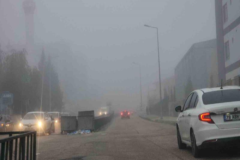 Karabük ve Safranbolu ilçesinde sabah saatlerinden itibaren etkili olan yoğun sis nedeniyle görüş mesafesi yer yer 20 metreye kadar düştü.