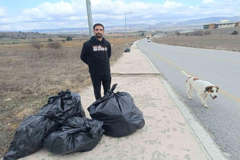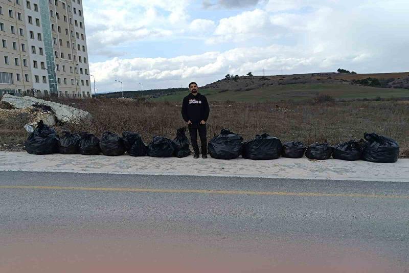 Kastamonu’da iki üniversite öğrencisi, yol kenarına atılan çöplerden rahatsız olarak harekete geçip 160 kilogramdan fazla çöp topladı.