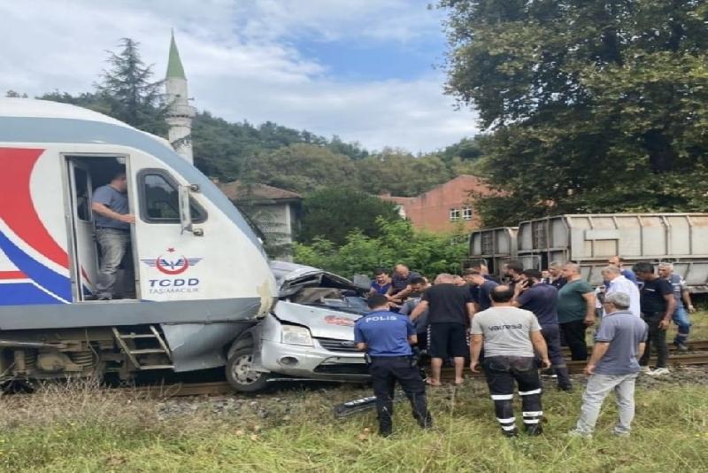 Zonguldak’ta yolcu treni hemzemin geçitte hafif ticari araçla çarpıştı. Kazada araç sürücüsü yaralandı.