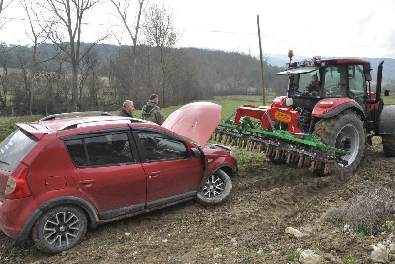 Yaralı sürücü yoldan geçen diğer sürücüler tarafından otomobilden çıkartılarak olay yerine gelen ambulansla hastaneye sevk edildi. Tarlaya uçan otomobil ise traktörle çekilerek tarladan çıkarıldı.