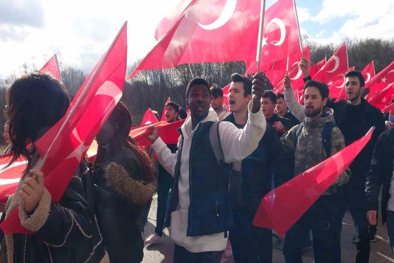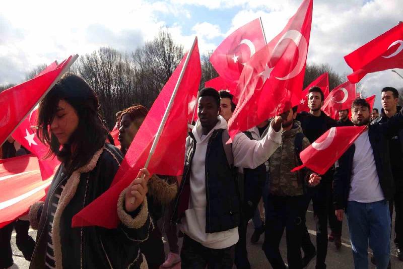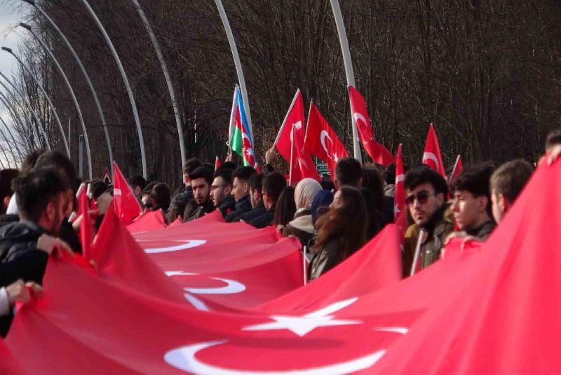 Kuzey Irak’ta geçtiğimiz gün hain saldırıda şehit düşen 12 asker için Bolu Abant İzzet Baysal Üniversitesi (BAİBÜ) öğrencileri yürüyüş düzenledi. Yaklaşık 2 bin öğrencinin katıldığı yürüyüşte, 100 metrelik dev Türk bayrağı açıldı. Öğrenciler tarafından ‘Şehitler ölmez vatan bölünmez’, ‘Kahrolsun PKK’ sloganları atıldı. Polis ekipleri tarafından yürüyüş boyunca geniş güvenlik önlemleri alındı.