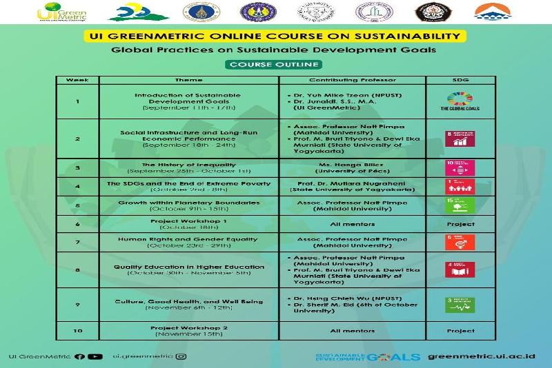 Üniversitelerde sürdürülebilirlik temalı ve GreenMetric stratejisiyle uyumlu olan dersler, 4 kıtadan 7 üniversitenin katılımıyla çevrimiçi olarak sunulacak. Türkiye GreenMetric Ulusal Koordinatörü olan Zonguldak Bülent Ecevit Üniversitesi ile üye üniversiteler, bu çevrimiçi derslerden ücretsiz olarak faydalanabilecek. Aynı şekilde, Zonguldak Bülent Ecevit Üniversitesinde eğitim gören tüm öğrenciler de bu imkândan yararlanabilecek. Dersler İngilizce olarak verilecek.