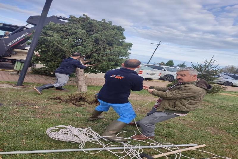 Zonguldak Bülent Ecevit Üniversitesi (ZBEÜ) kampüslerinde 9 Kasım 2023 Pazar günü Zonguldak’ta başlayan şiddetli yağmur ve fırtınadan zarar gören 68 ağaç, destek yapılarak tekrar ayağa kaldırıldı.