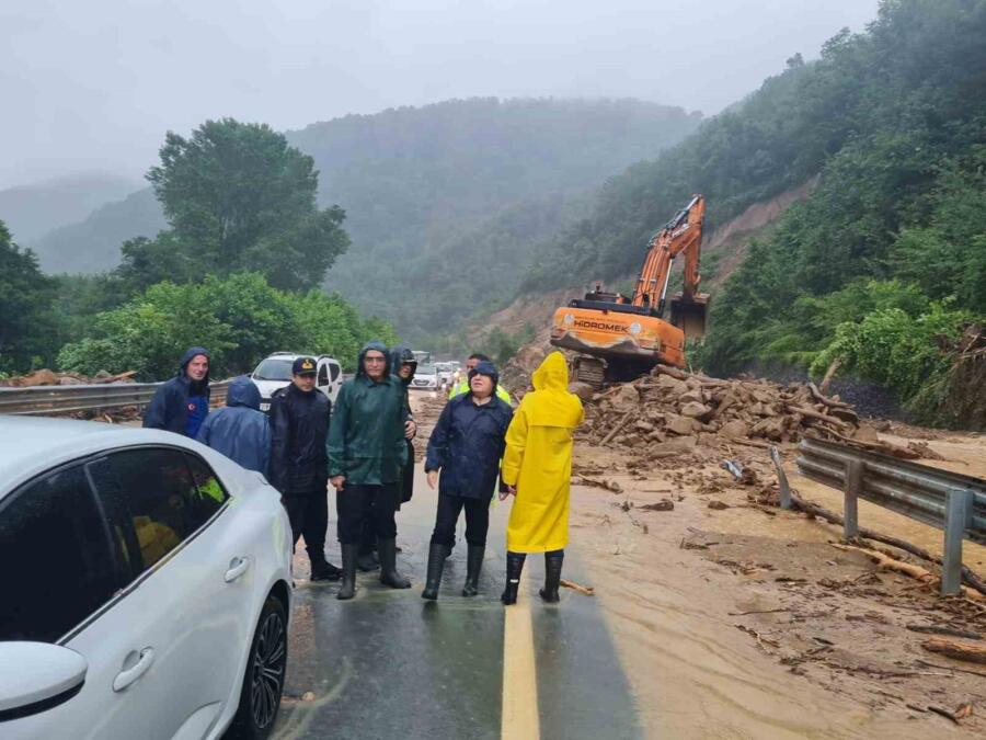 Zonguldak-Ereğli Karayolu’nda, sağanak yağışlar sonrası meydana gelen heyelanlar nedeniyle yol çift yönlü olarak trafiğe kapatıldı.