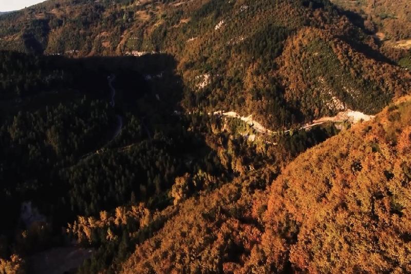 Zonguldak’ta dört mevsim ayrı bir güzelliğe bürünen Devrek ilçesine bağlı Tosunlar köyü ve şelalesi sonbaharda ortaya çıkan eşsiz manzara havadan dron ile görüntülendi.